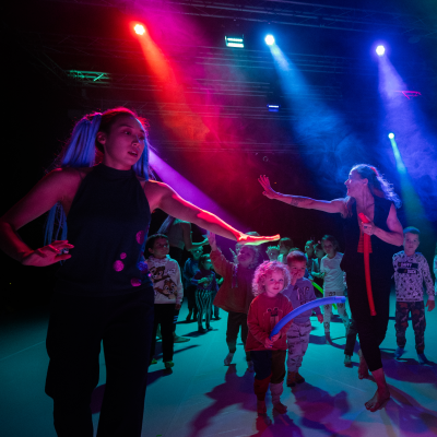 Pohlcujúce a interaktívne stretnutie pozýva deti hýbať sa, hrať a tvoriť – pomocou svetla, zvuku, objektov a pohybu. Spolu sa vydáme na cestu do sveta fantázie, kde sa môžeme stať zvieratami, letieť ku hviezdam alebo sa ponoriť do hlbokého mora.