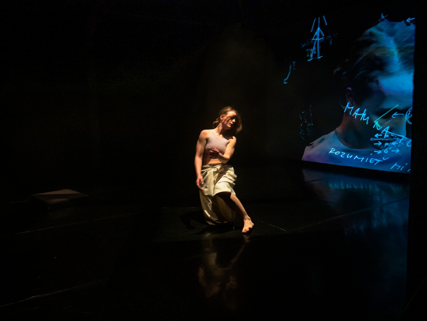 “Neprerušuj svoje myšlienky slovami. Vojdi a usaď sa v tichu.” Predstav si (pekuliárny) pohyb, myseľ a telo, ako objekty pozorovania a ohýbania, počuješ? “Tento proces vs. dielo, je moje rezonujúce telo a moja tancujúca myseľ. Návaly rezonancií v rôznych častiach bytu, ako dlhodobý rituálny performatívny experiment mi pomáhajú zachytávať prieniky medzi sebou ako tanečnicou a sebou ako človekom. Celý rok obsesívne skúmam a analyzujem rizomatické vystreľovanie impulzov, ktoré moja myseľ produkuje. A telo prežíva.”