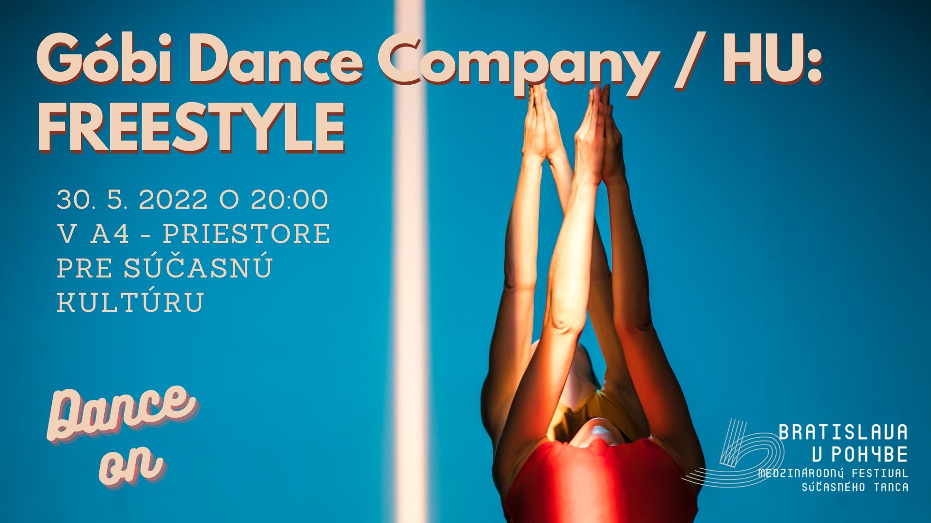 rozhodli sme sa, že vám v tomto roku budeme prinášať súčasný tanec aj mimo festivalu Bratislava v pohybe. V našej sérii s názvom DANCE ON vám prinesieme 3 tanečné predstavenia v priebehu mája a júna 2022.