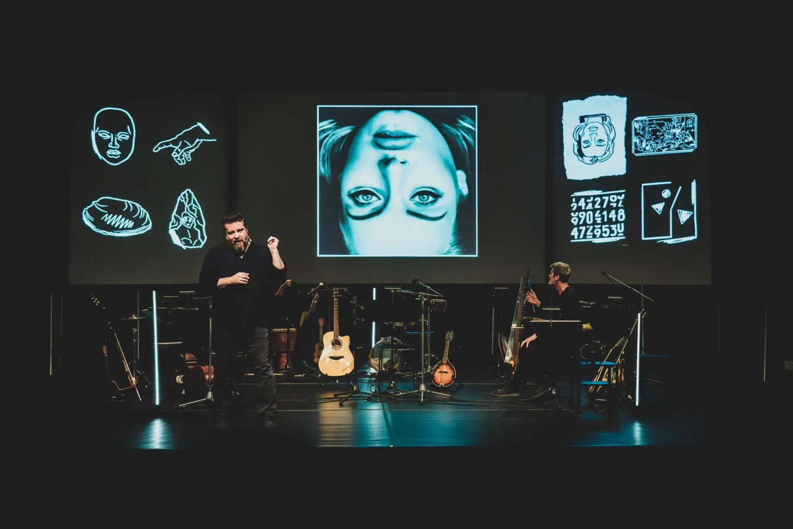 Reťaz úvah prepája originálnymi hudobnými skladbami trio performerov, hudobníkov a spevákov.