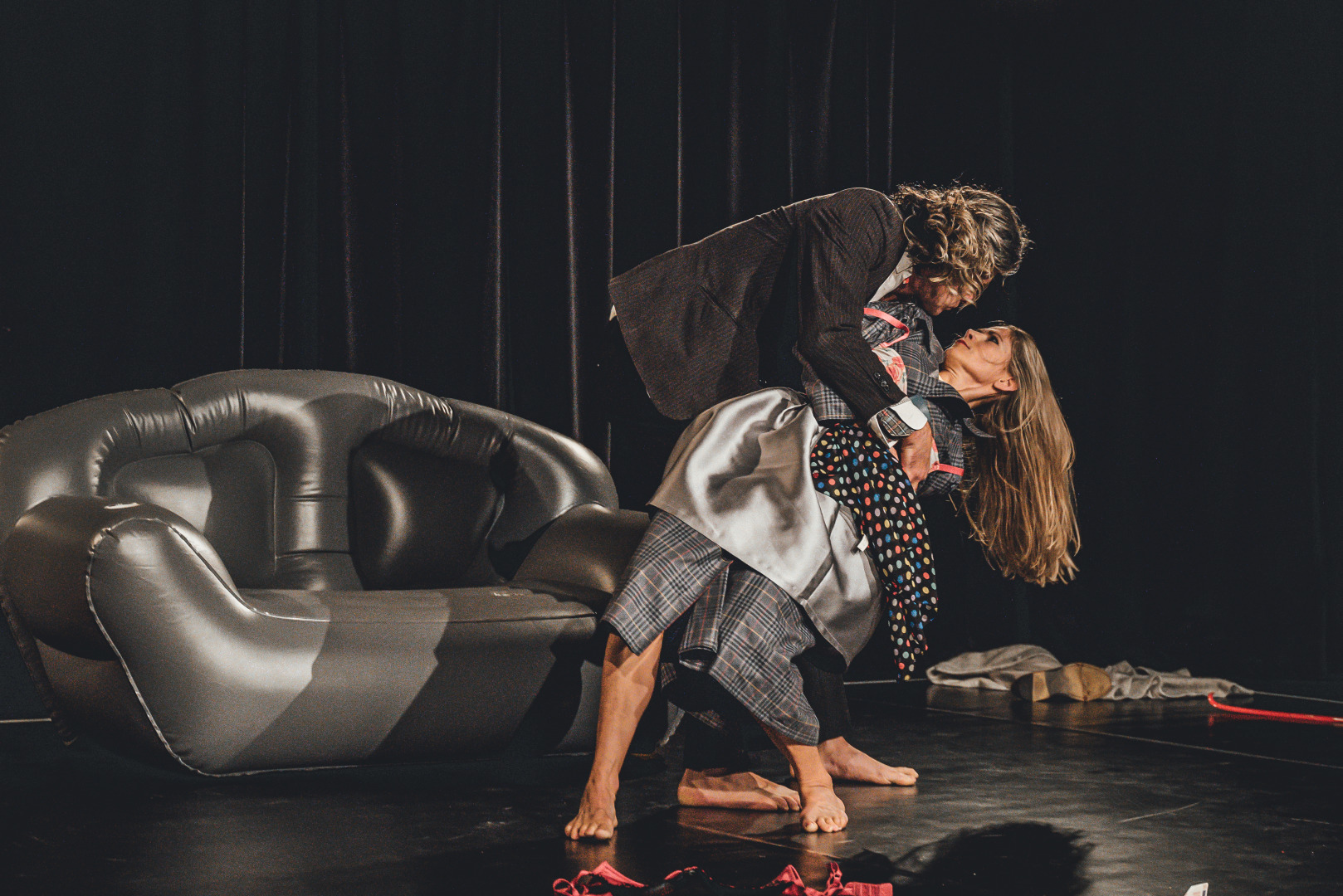 MEMOROOM je surealistická tragikomédia fyzického divadla TRIO OLGA, ktorá sa pohráva s témami straty pamäti, identity, vlastných myšlienok, lásky a reality.
