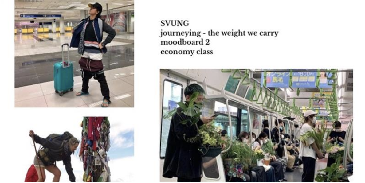Projekt Journeying sa zaoberá témou ‚cestovanie‘, skúma nútenú migráciu, každodenné dochádzanie a pútnictvo. Tím sa zaujíma o to, čo naše telá uchovávajú a uvoľňujú pri prekračovaní hraníc – medzi krajinami, zvykmi, myslením a emocionálnymi väzbami. Téma vzišla z osobných skúseností členov SVUNG research group.