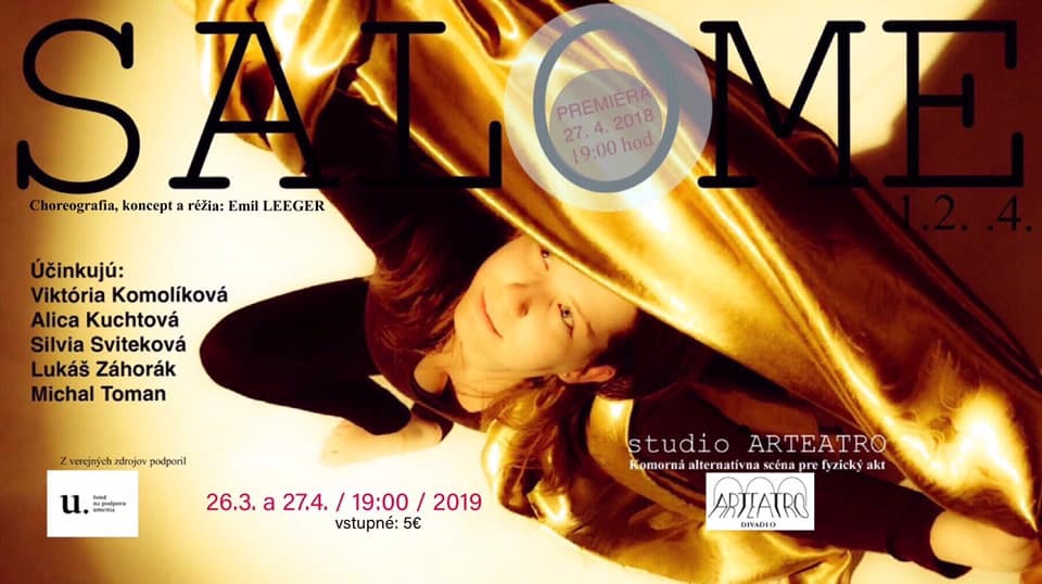 The physical theatre performance with elements of new circus at studio ARTEATRO - SALOME 1.2. .4. was supported using public funding in the scholarship form by Slovak Arts Council.
