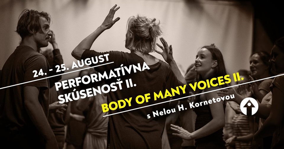 Workshop bude nadväzovať na Nelinu praktiku „Body of Many Voices“ a zároveň pokračovať ďalej, smerom ku kompozícii v priestore a tvorbe. Workshop je určený umelcom, tanečníkom, hercom, pohybovým a divadelným nadšencom a ľuďom, ktorí majú chuť intenzívne pracovať s telom a hlasom v priestore a ich prepojením. Príďte (znovu) objaviť svoje nadšenie pre performatívne umenie! Spoločne budeme hľadať rovnováhu medzi zámerom, otvorenou mysľou a našou vášňou či záujmom tu a teraz.