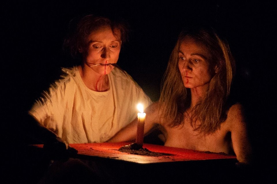 V tomto predstavení bez slov, ktoré nie je imitáciou žiadneho vystopovateľného bohovania, ale vlastnou podobou rituálu, vytvoreného formou kolektívnej tvorby, sa na bohyne zahrajú Heidi Šinková a Katarína Zagorski v réžii a choreografii Jara Viňarského.