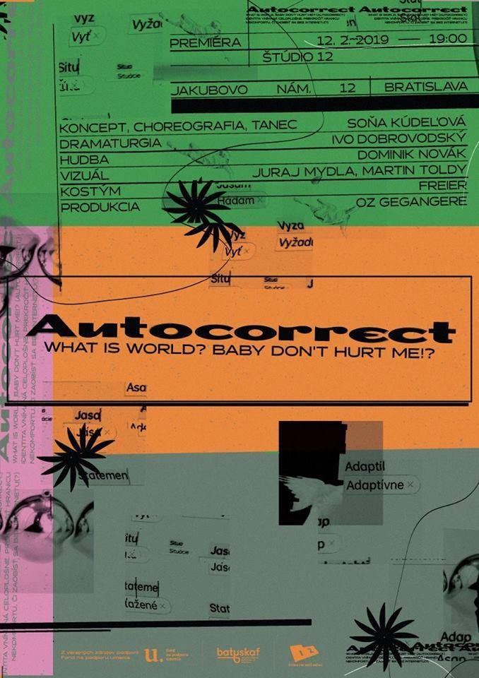 Autocorrect is a solo dance performance conceived by artist Soňa Kúdeľová that draws inspiration from the algorithm of automatic text correction as well as the consequences of its use and operating in everyday life. The play of multitasking, being engulfed and in control of autocorrect as a tool of identity.