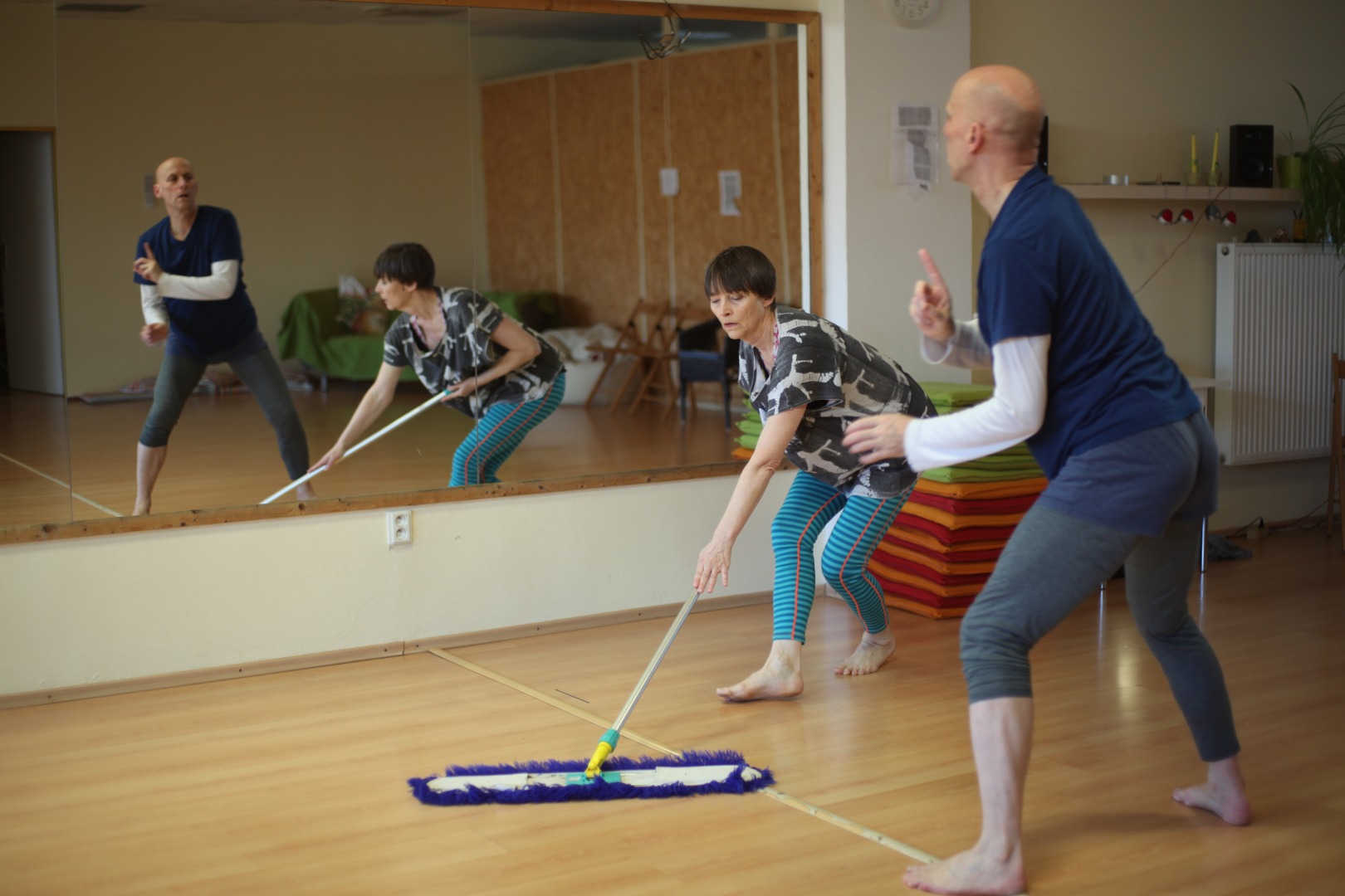 'Priestor pre dvojite Samohlasky' is in some sense Already There as Anglo/Slovak encounters between dance artists Anka Sedlackova and Matthew Hawkins span a variety of situations and three decades. They feel it is good not to overlook what happens to be comprised, and yet it feels right for these 'lifelong learners' to pay homage to what might be immediately to hand in their beloved working locales. Experimenting with a methodology of the makeshift, they intend to conjure a pop-up experience, with apt depth.