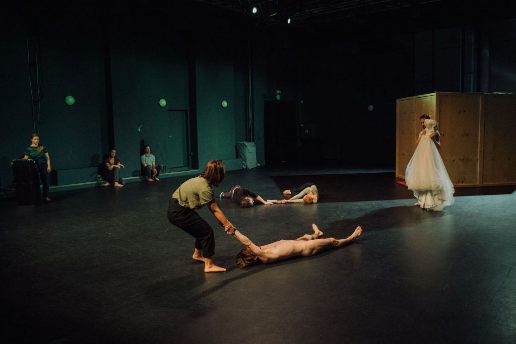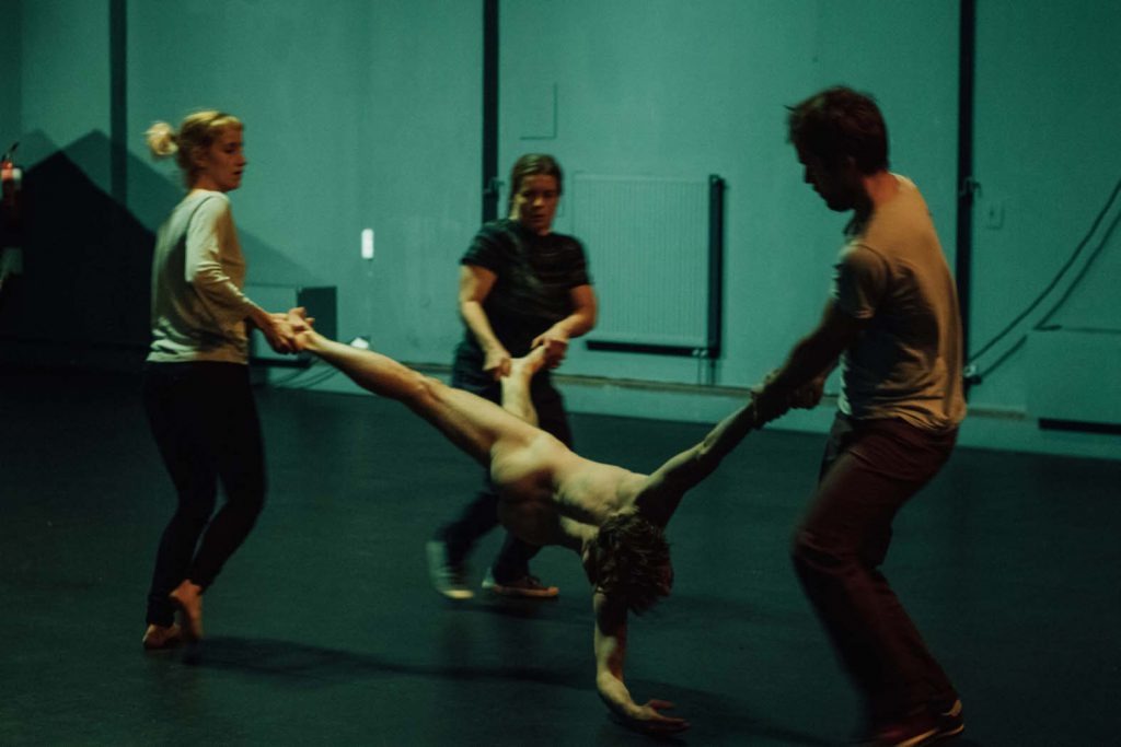 The principle of alternating static and dynamic images, in which a group of performers engages with the body of performer Jaro Viňarský. His passivity is not neutral, his body is cooperating and handed over to the crowd, the dramaturgy is a result of a common concentration of everybody involved. From simple composition of bodies in space to monumental compositions, whoever can become the instigator of the motion.