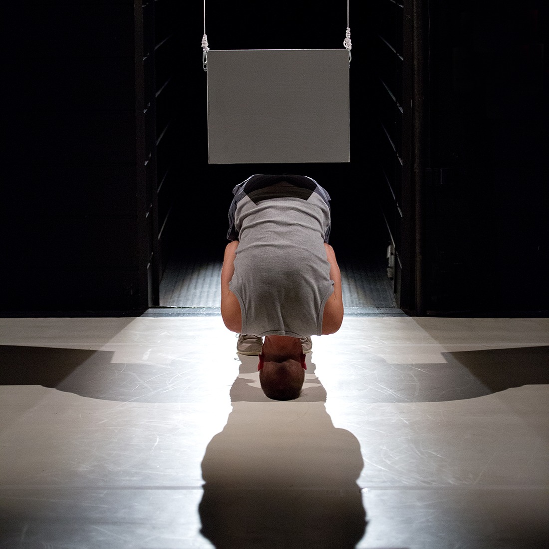 The topic of Yuri’s newest performance comes right out of his theoretical research at the Academy of Performing Arts in Bratislava. In the centre of the attention there is a frame of performative body as the ultimate communication medium – the frame going much further than the limited linearity of language codes.