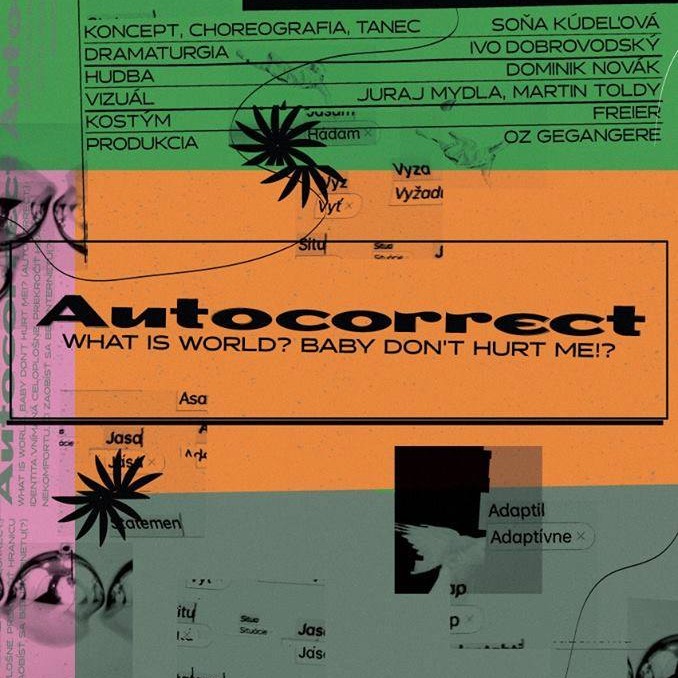 Autocorrect is a solo dance performance conceived by artist Soňa Kúdeľová that draws inspiration from the algorithm of automatic text correction as well as the consequences of its use and operating in everyday life. The play of multitasking, being engulfed and in control of autocorrect as a tool of identity.