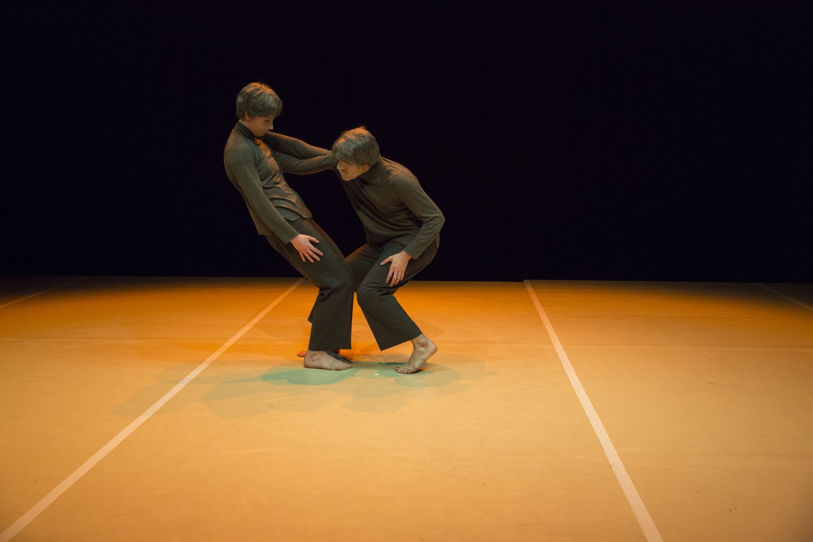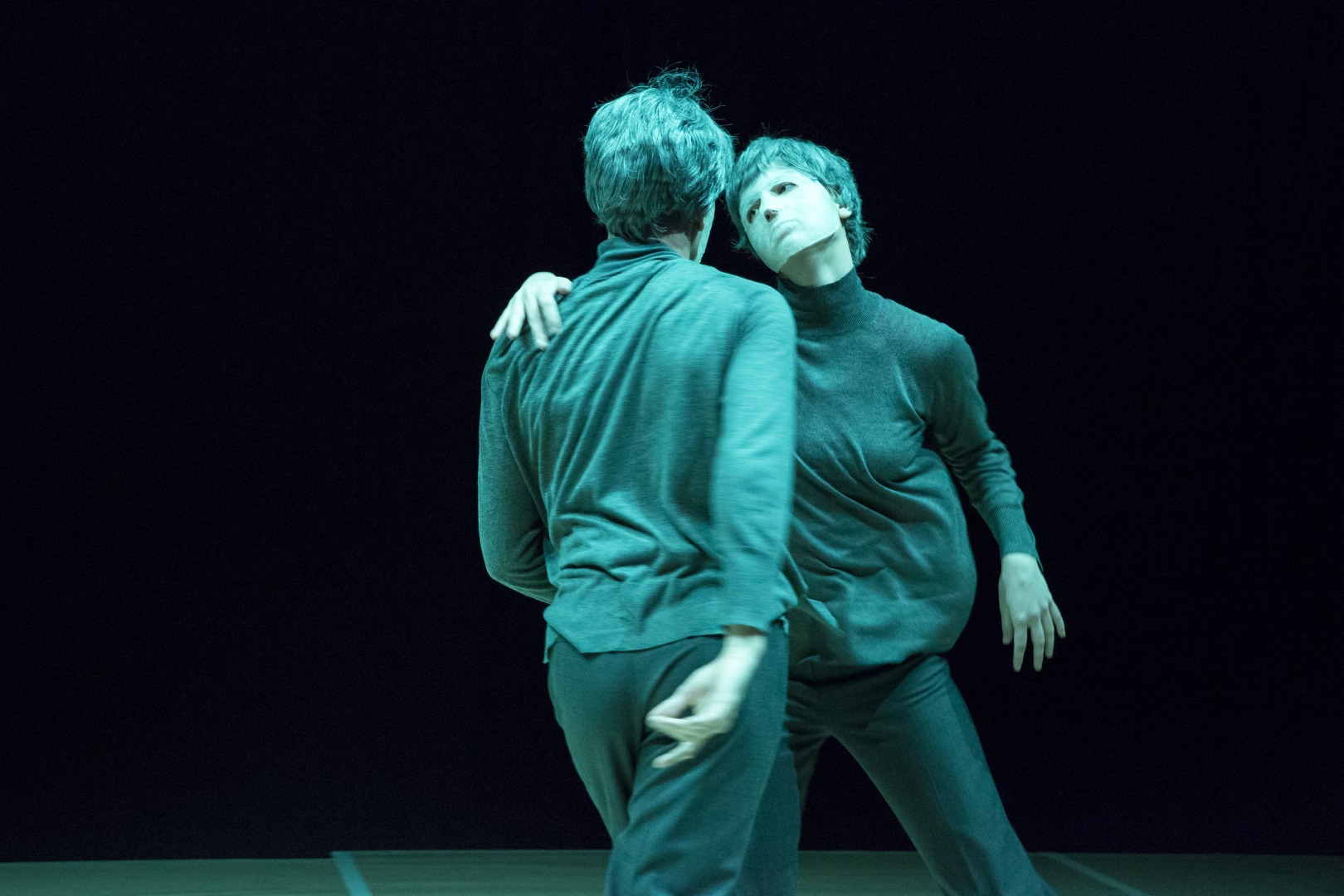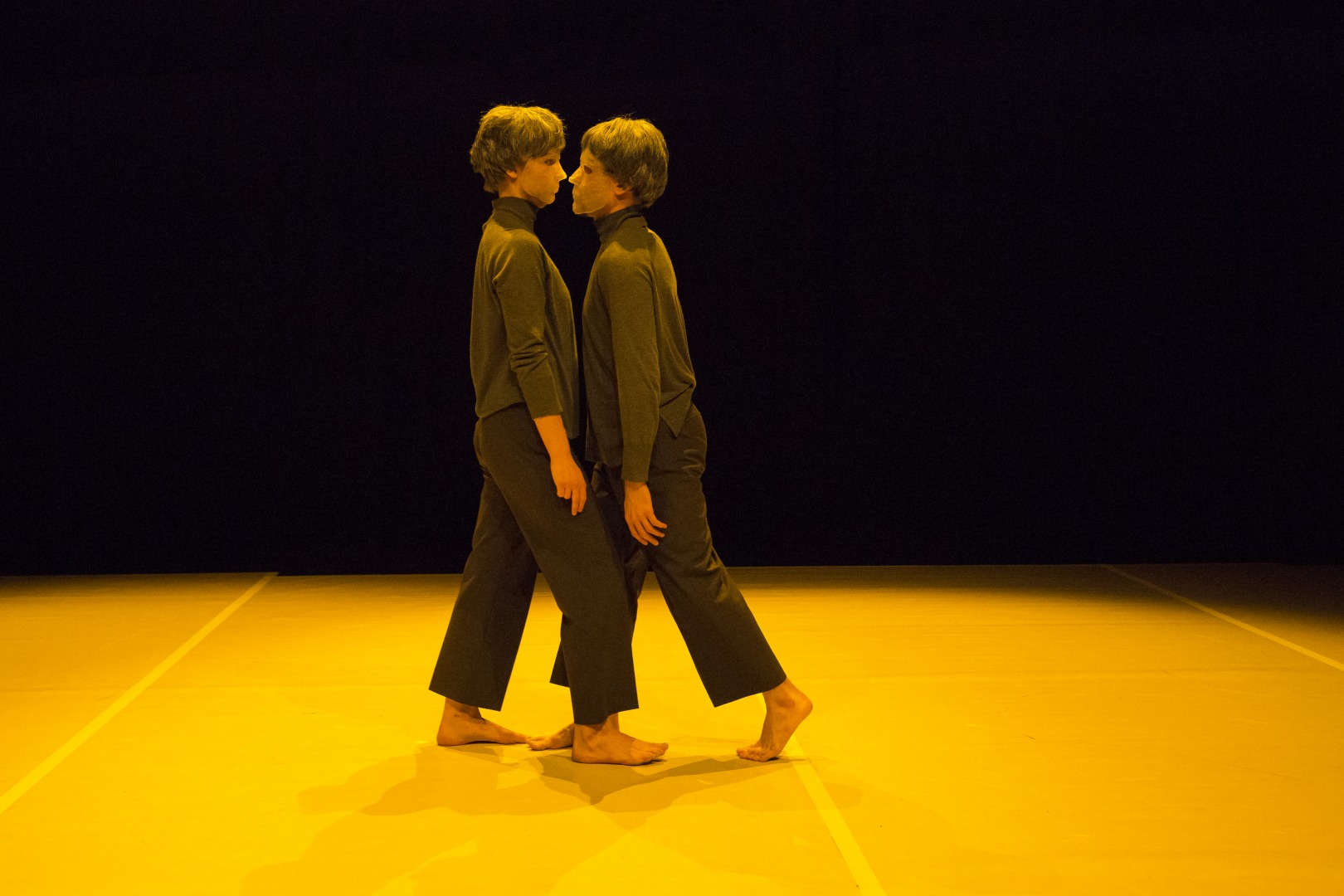 The basic idea of the choreography was to look for possibilities how to grasp, with minimal means of expression, the existential question of tension, which is the essence of life. A tension that vibrates and oscillates, that is sometimes invisible and sometimes so evident that it obscures everything else. The existence of tension presupposes the existence of opposites – their examination was the second idea of choreography. The circle is the final idea of the choreography. Its qualities such as secretiveness, autonomy and symmetry nourished the work. The use of masks originally had only one goal – to draw attention to the body, but perhaps it creates the opposite tension. Finally, it also refers to our current experience.