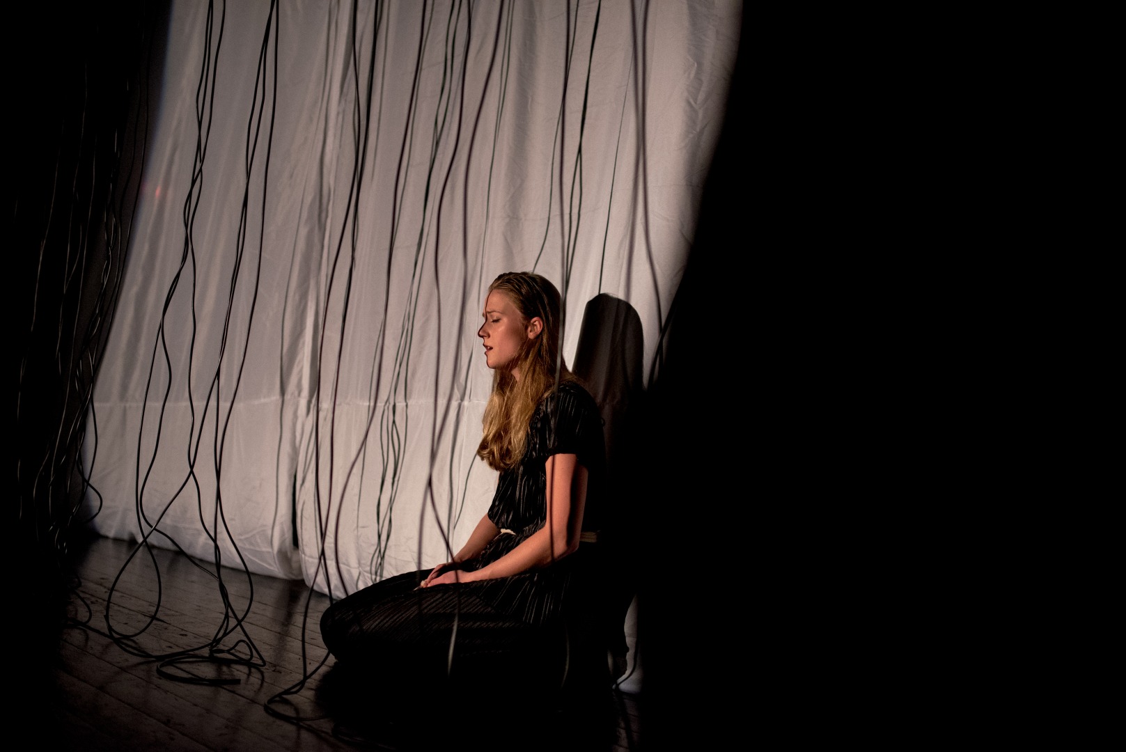 Present in the space are the spectators and objects of different shapes and functions. And the performers, who are the energetic conductors connecting everything. The spectators arrive, choose a spot, sit down and the objects begin to resonate with their movements and feelings. Everything in the space is washed over by music and movement. Though this fluidity can perhaps not be perceived with a naked eye, it can surely be exploding within us. The role of „the energetic conductors“ is to let all these vibrations pass through them, resonating. If they feel a potential in the established resonance, they navigate or transform, dive deep into their own fantasy and through this create a tangible matter in the space. This matter that is in reality born from the togetherness in the room.