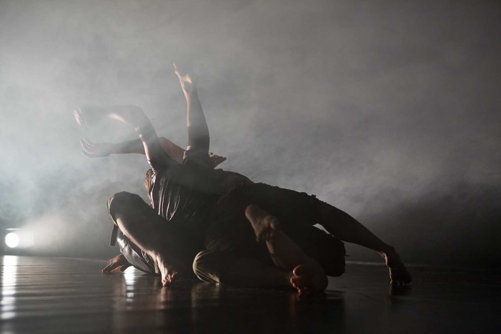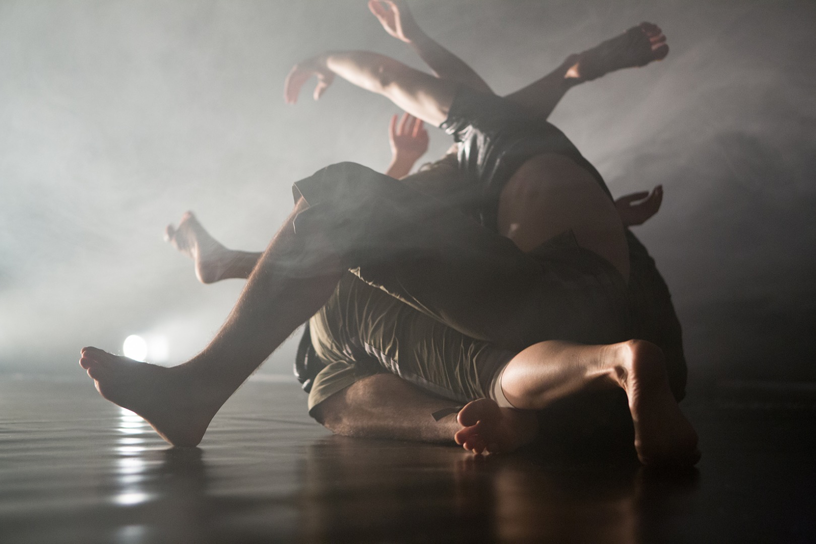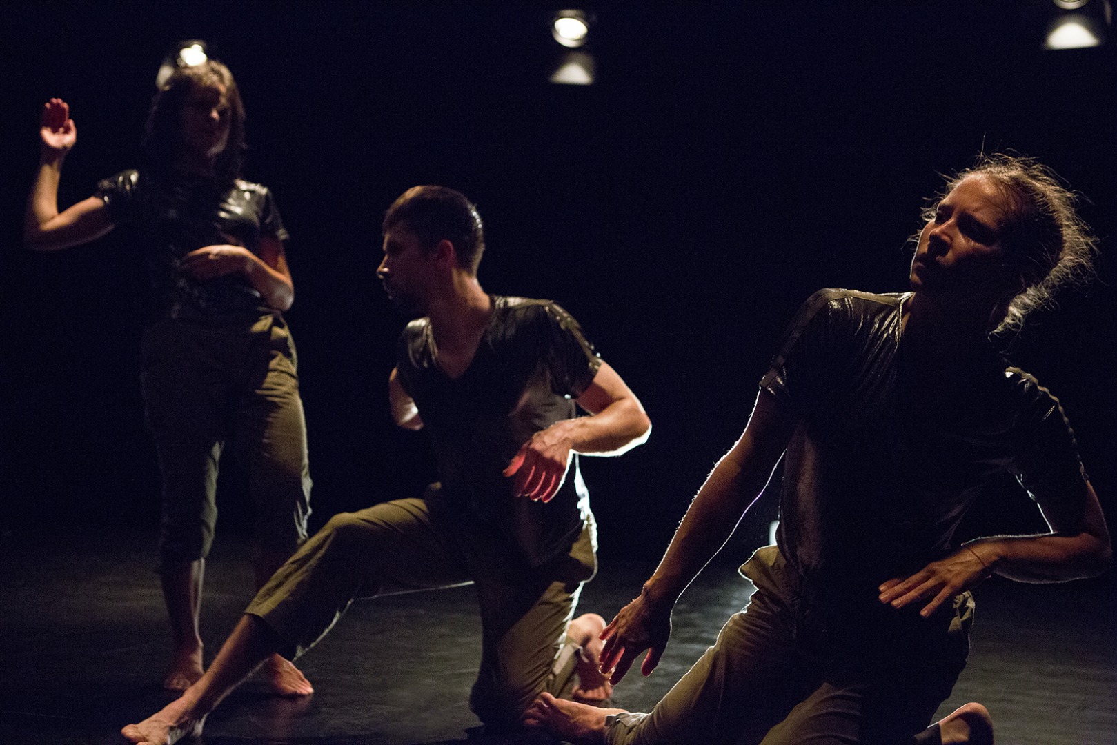 Inspired by the work of Bernie Kraus, who, for decades, has studied and recorded sounds found in nature without human activity: soundtracks of larvae, flowers, or monkeys, the music of the piece is inspired and composed of more or less concrete organic sounds. The dancers work with the sensitive, actively listening and intuitively responding bodies. They create bodies that can be seen as either human or non-human, or both at the same time – as an animal, as a machine, as something in-between.